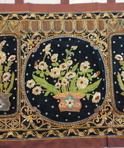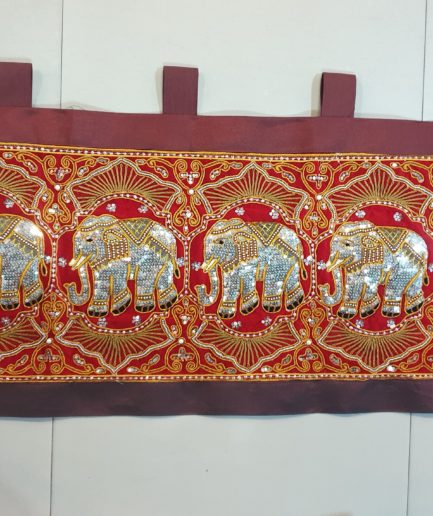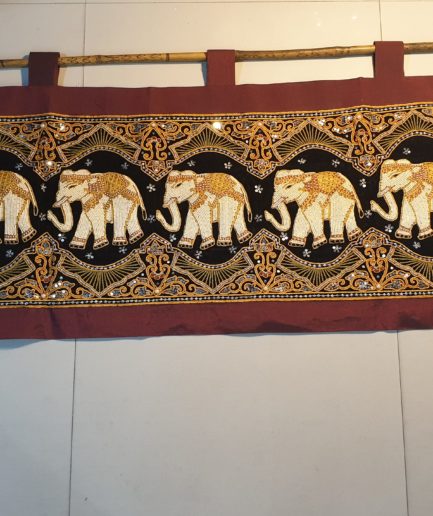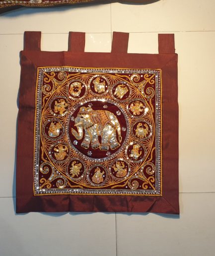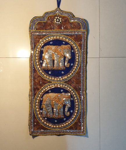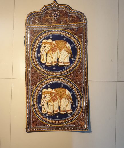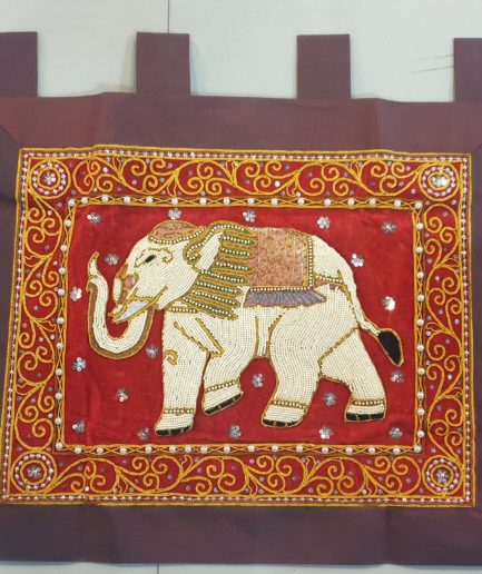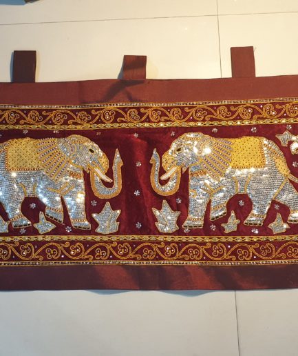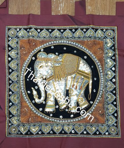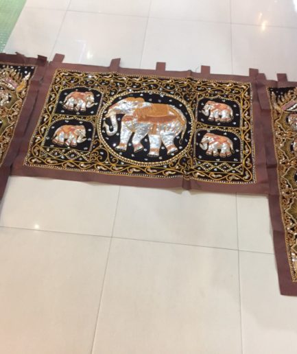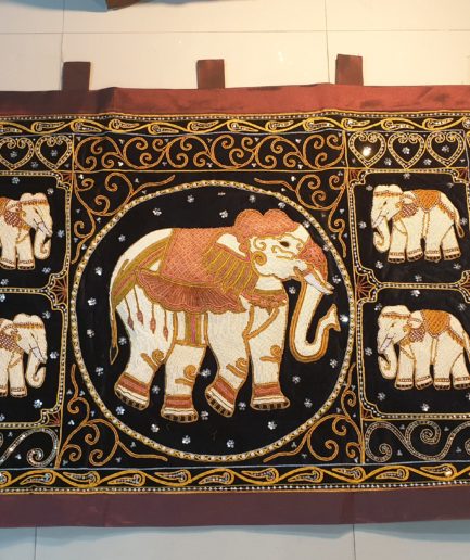 ผ้าปักแขวนผนัง หูหิ้วช้างคู่มุกหรือเกล็ดเงิน