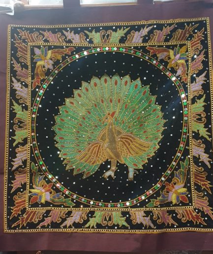 ผ้าปักแขวนผนังนกยูงดิ้นทอง