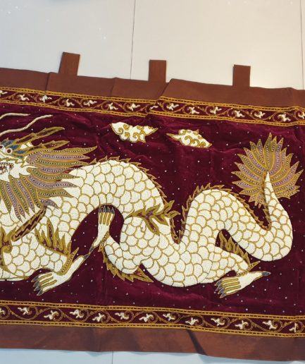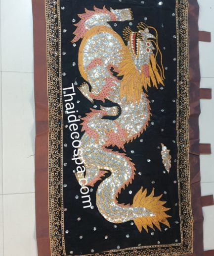 ผ้าปักแขวนผนังมังกรใหญ่ เกร็ดเงิน