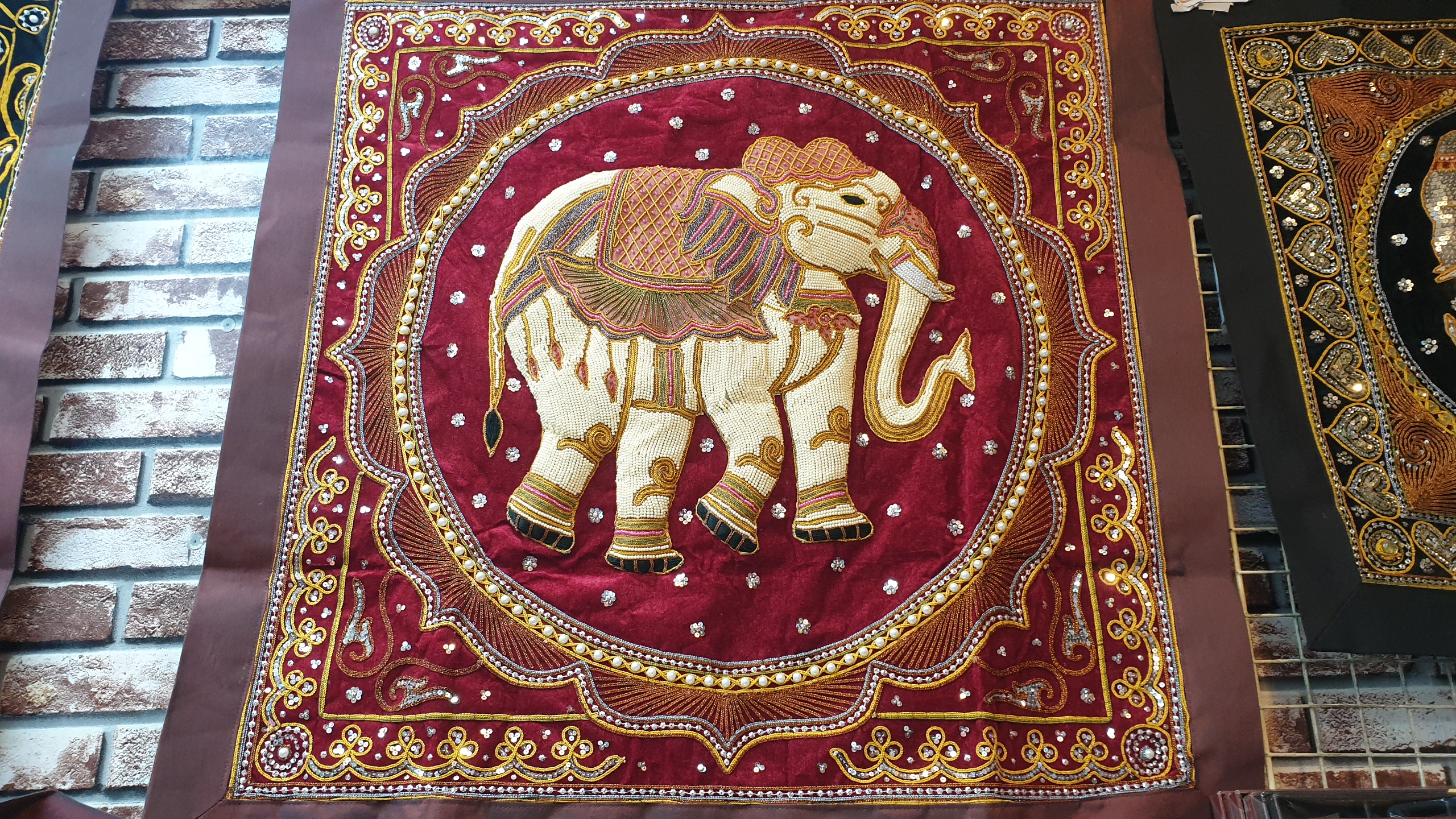 ปักช้างตัวใหญ่ตัวเดียว มี 3 สี ดำ แดง น้ำเงิน ขนาด90×90ซม.