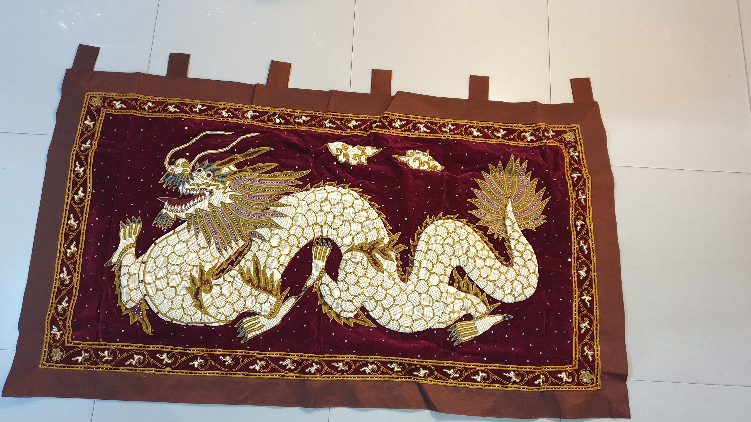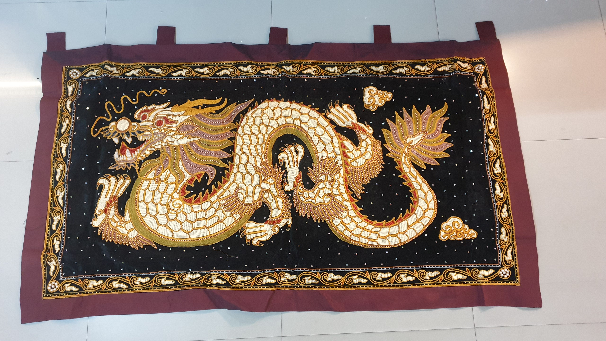 ปักด้วยเลื่อมและมุกทั้งผืนขนาดใหญ่ ขนาดกว้าง 180 ซม. ยาว 100 ซม.