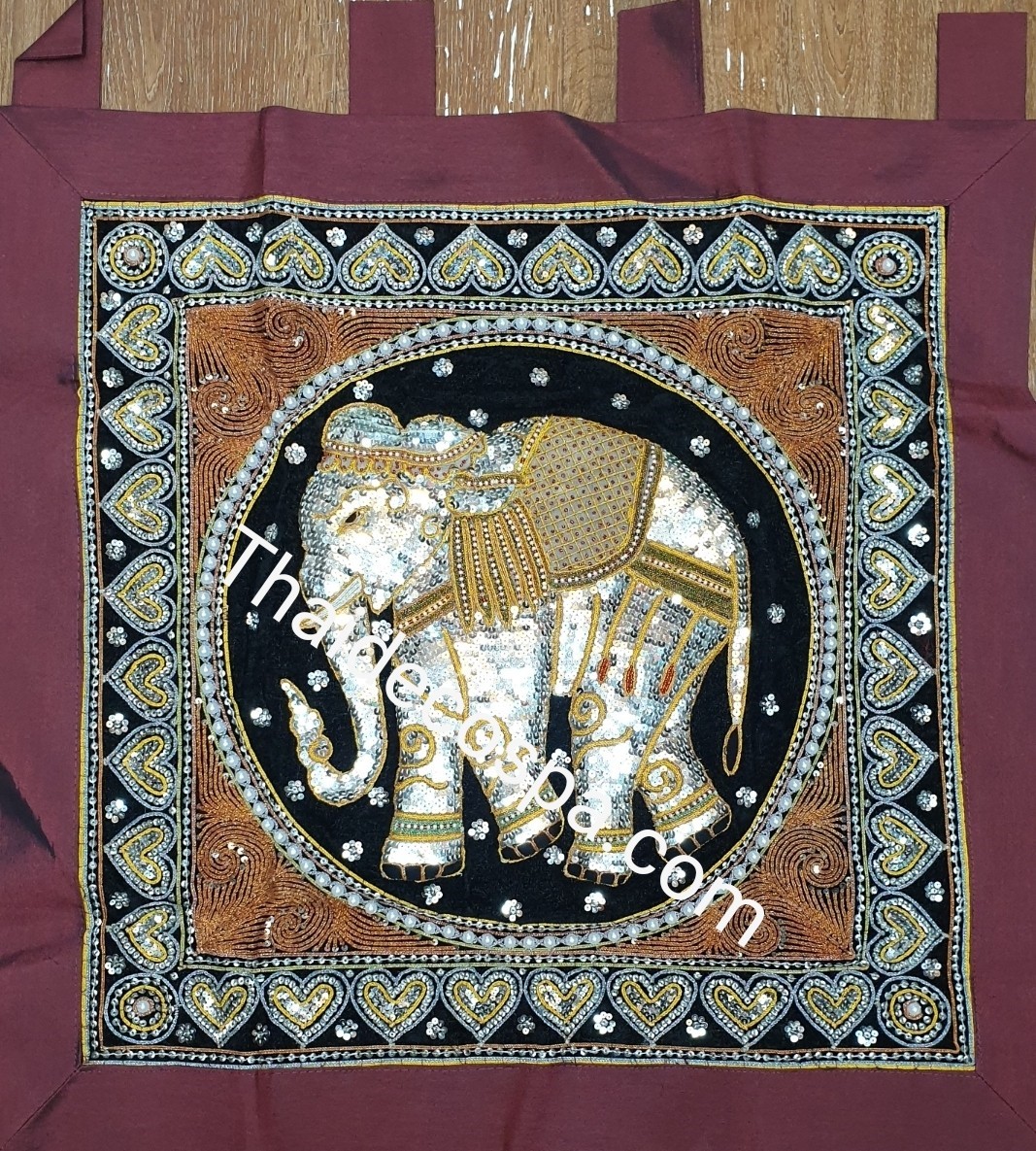 ปักด้วยเกล็ดรูปหัวใจรอบผืน ช้างตัวเดียวขนาดจตุรัส70×70ซม.