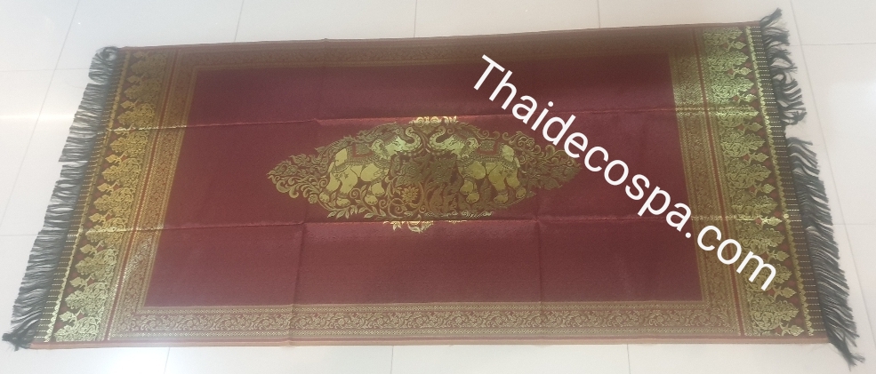 ผ้าปูโต๊ะขนาด4-6 คน หรือปู เตียงสปาลายช้างคชสาร หันหน้าชน ขนาด 40″ หรือ 102ซมx220 ซม ราคาผืนละ 460บาท